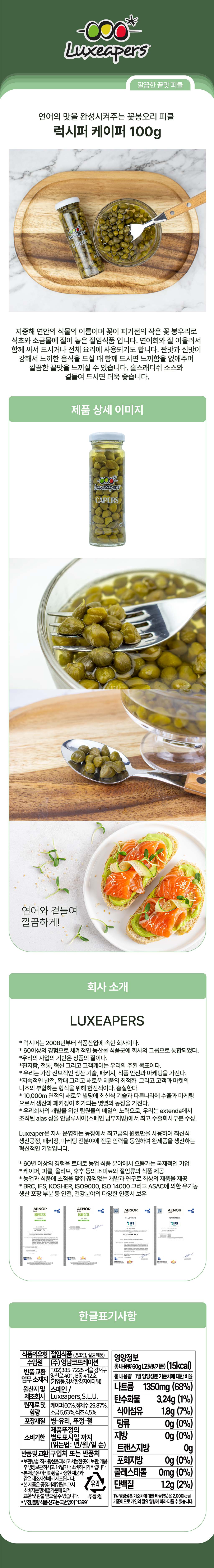 케이퍼는 지중해 연안의 식물 이름이며 식초와 소금에 절여놓은 절임 식품입니다. 연어회와 잘 어울려서 함께 싸서 드시거나 전체요리에 사용 되기도 합니다. 홀스 래디쉬 소스와 곁들여 드시면 더욱 좋습니다.